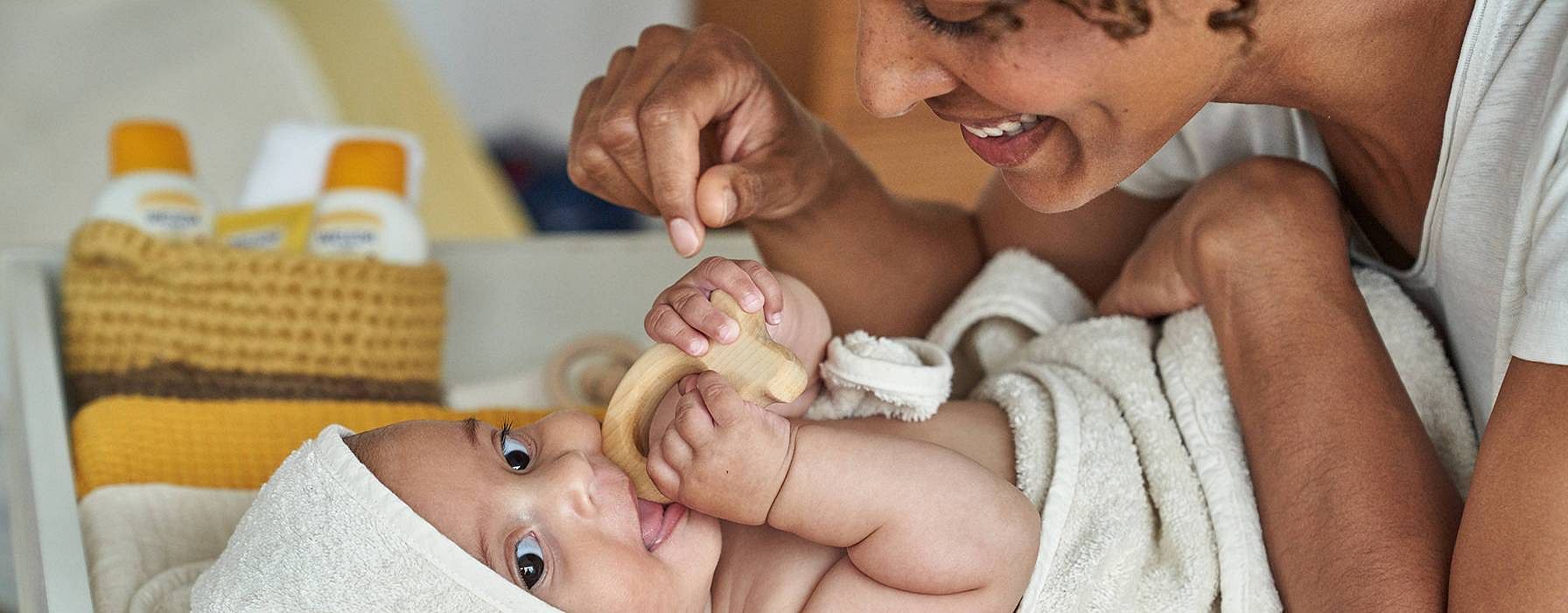 Keď si bábätko prinesiete z pôrodnice, čakajú vás prvé mesiace plné očakávania a vzrušenia. Spolu s mnohými zmenami vo vašom rodinnom živote prichádza aj nový typ zodpovednosti, ktorý je pre väčšinu rodičov veľkou výzvou. Časom, trpezlivosťou a ohľaduplnou starostlivosťou sa naučíte vnímať potreby svojho dieťatka, čo zase ovplyvní jeho vzťah k vám. Pocit, že je v bezpečných a milujúcich rukách podporuje jeho dôveru. Vďaka dôkladnej každodennej starostlivosti tak môžete zaistiť, aby sa s vami dieťa cítilo maximálne v bezpečí.