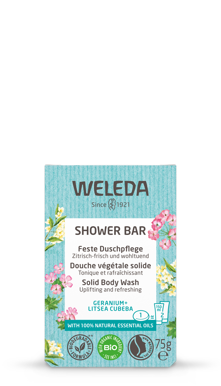 Starajte sa o svoju pokožku, rozmaznávajte zmysly a minimalizujte množstvo plastového odpadu. Osviežte svoju myseľ pôsobivou kvetinovou zmesou s gerániom a litsea cubeba. Vôňa tvorená 100 % prírodnými esenciálnymi olejmi sa vďaka horúcej pare rozvinie, aby vám priniesla jedinečný harmonizujúci zážitok. Biologicky odbúrateľná receptúra 100 % prírodného pôvodu sa stará o vašu pokožku a zanecháva ju čistú a navoňanú. Krémová pena obohatená o organické bambucké maslo a rastlinný glycerín bude vašu kožu rozmaznávať a dôkladne čistiť - všetky benefity, na ktoré ste vo Welede zvyknutí, teraz získate v tuhej podobe! Pena sa ľahko oplachuje - môžete tak počas sprchovania vypnúť vodu a trocha jej tým ušetriť! Jedno mydlo vydrží približne tak dlho, ako dve 150 ml balenia sprchovacích krémov od Weledy. Balené je do papiera, ktorý obsahuje minimálne 55 % recyklované materiály a možno ho ľahko znova recyklovať. Čistá tak bude nielen vaša pokožka, ale aj svedomie.